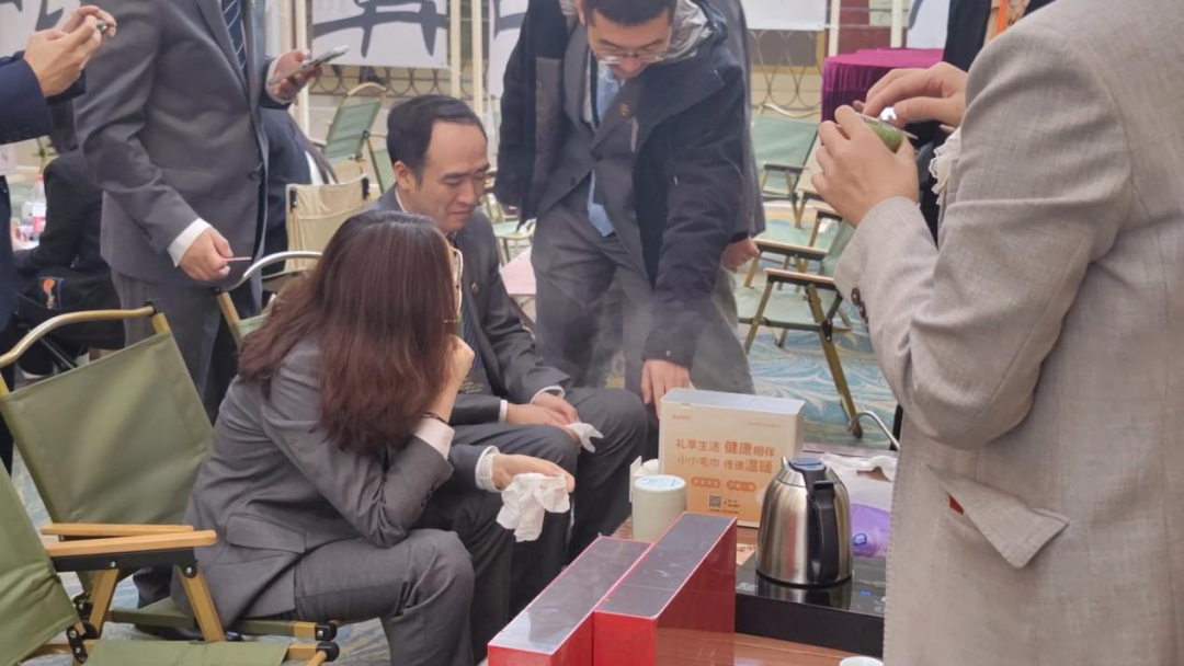 多场景运用,健康生活 此次活动现场,来朵棉花物联网毛巾机随处可见——无论是会场、品牌集市乃至餐桌上都能体验到舒适热毛巾。随时随地,来朵棉花擦一下!